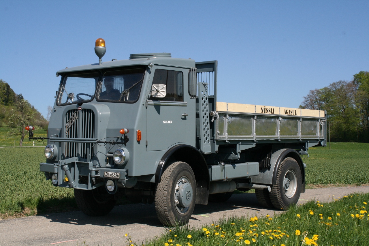 Seit dem März 2013 gehört dieser FBW "Vierlivier" zu unserer Oldtimersammlung. Es ist ein seltener Allrad FBW mit 170 PS ED-Motor und der schweren 70er Hinterachse. Mit seinem Viergang-FBW-Getriebe und dem FBW-Verteilergetriebe erreicht er eine Höchstgeschwindigkeit von 60km/h. Der Lastwagen wurde durch Fabian Nüssli komplett restauriert.